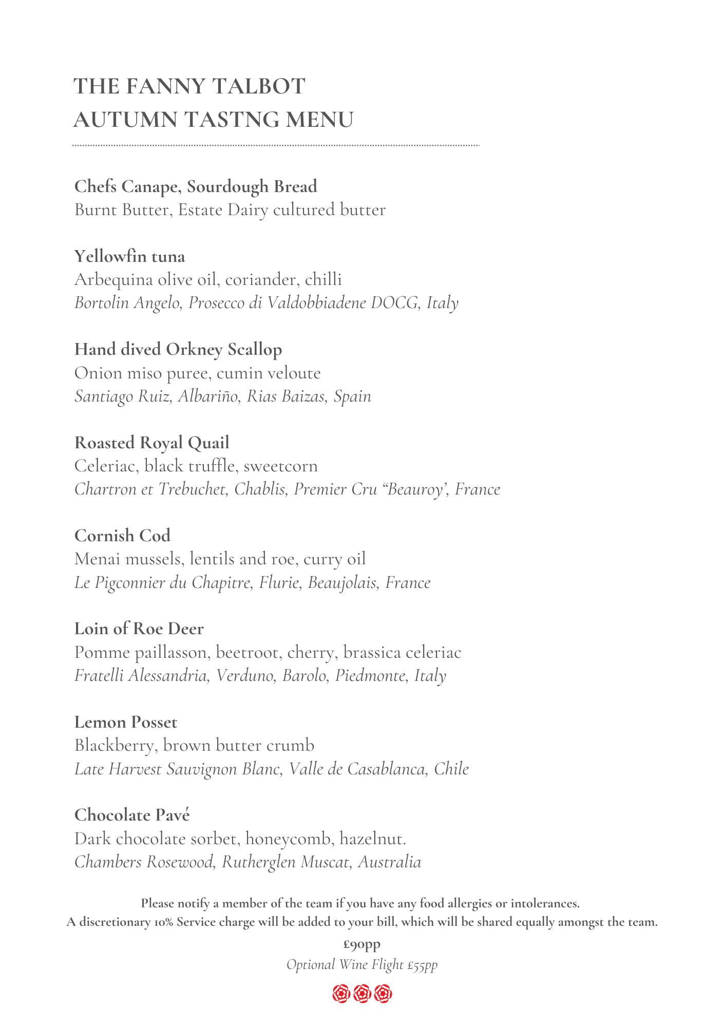 Please note that the Tasting Menu has a last sitting of 7.45. Our fabulous Two Course Evening Meal is £60.00pp and our Three Course Meal is £70.00pp. Our unique Taster Menu is £90.00pp.