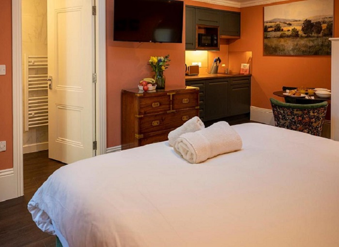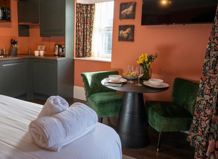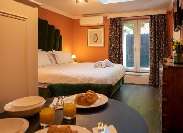 This dog friendly room is situated at the rear of the property and features a small terrace ideal for sitting out and letting your furry friend get some fresh air. Please note, there is an extra £40 per stay charge for dogs.