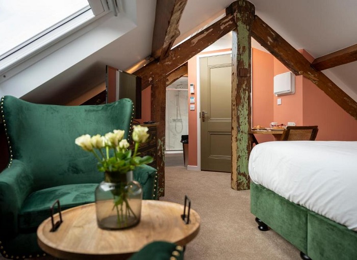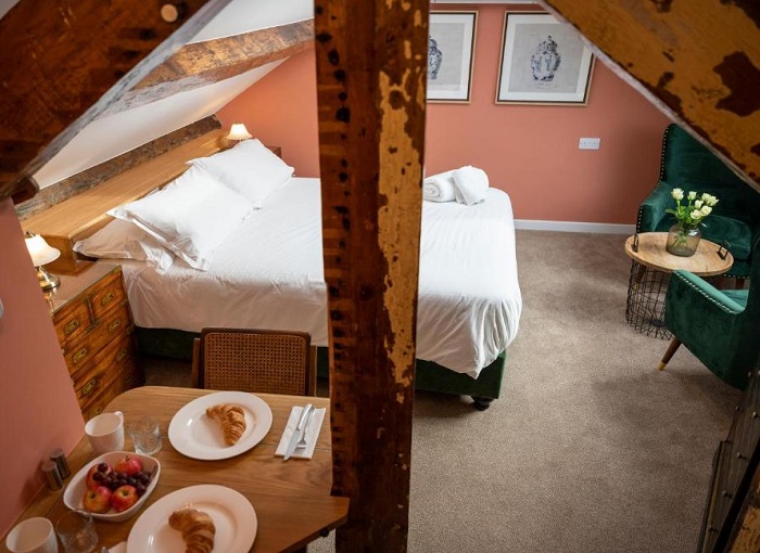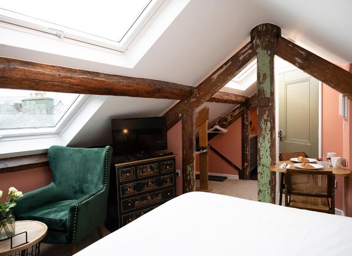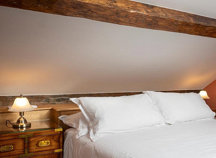 Situated on the third floor, this unique room has original exposed beams, a Super King bed, and a separate bath and shower. Please note the head height is restricted in places.